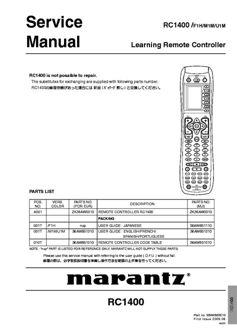 Download marantz rc1400 manual mobipocket